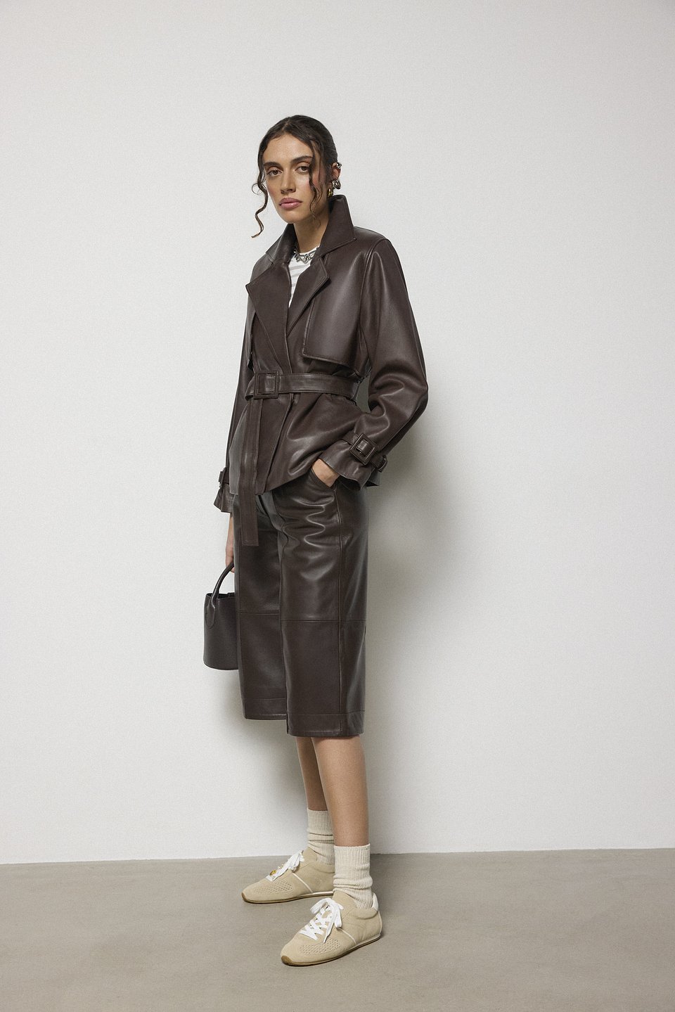 STATEMENT LEATHER by Answear.LAB to kolekcja, w której skóra kreuje nastrój stylizacji tak naturalnie, jak zmienia się światło w trakcie coraz dłuższych dni. Marka pokazuje jej różne oblicza: od mocnych, wyrazistych kurtek po delikatne spódnice i spodnie, w których ruch ciała i lekkość tkaniny współgrają z nastrojem chwili.